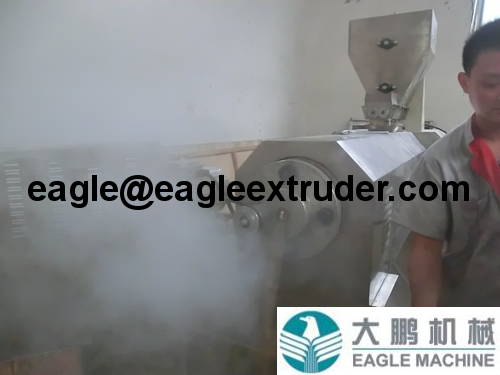 濟南大鵬機械廠家為來訪客戶演示膨化機狗糧生產過程及注意事項