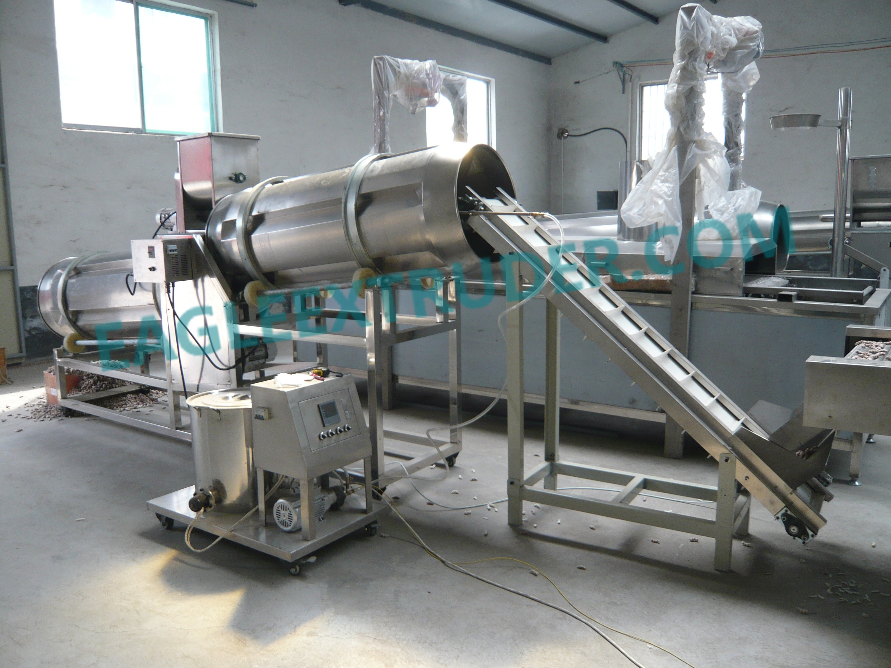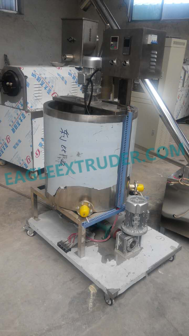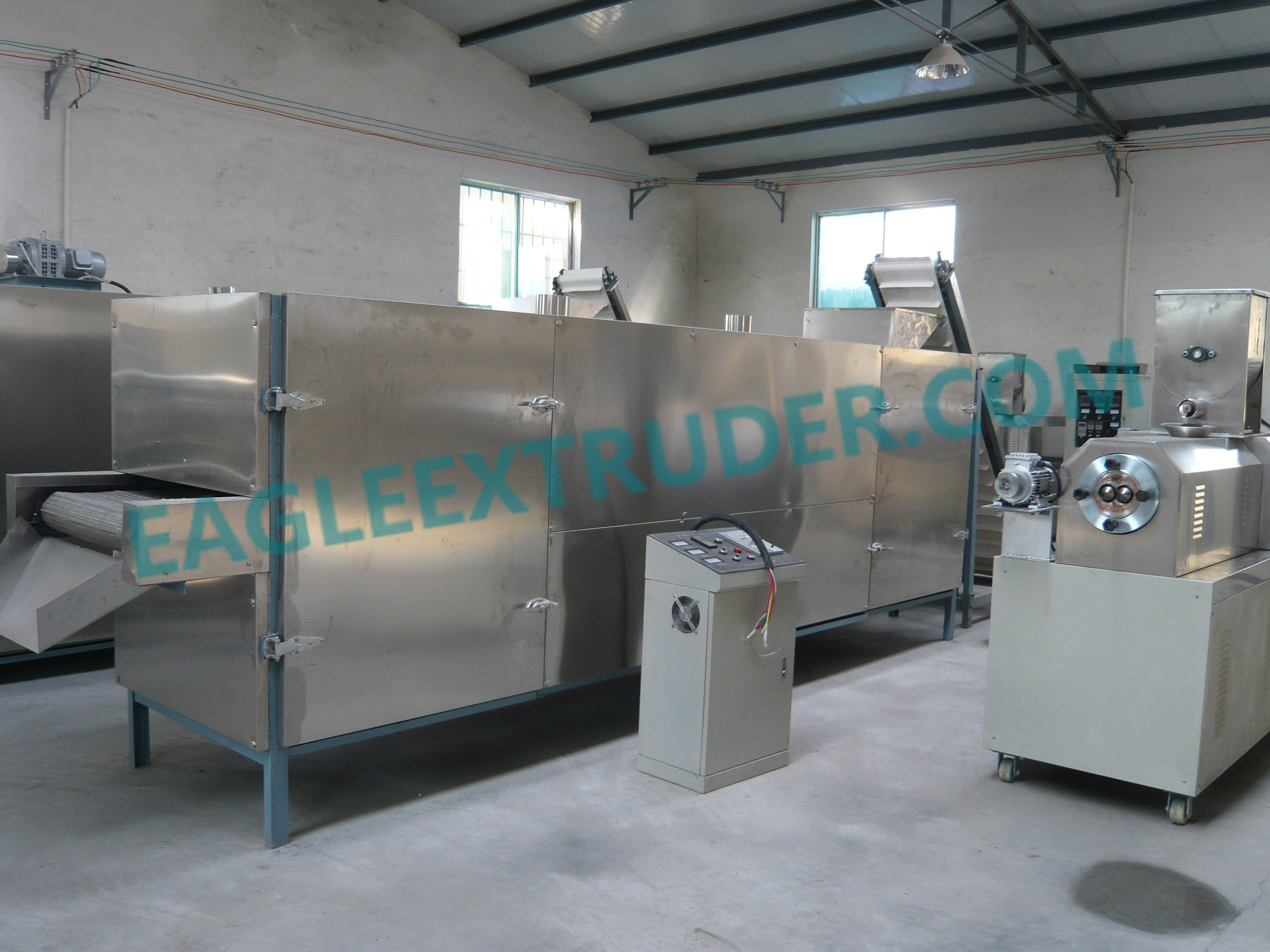 3. 雙螺桿擠壓機:   外膨化料為 玉米粉,大米粉, 面粉等谷物原料。
