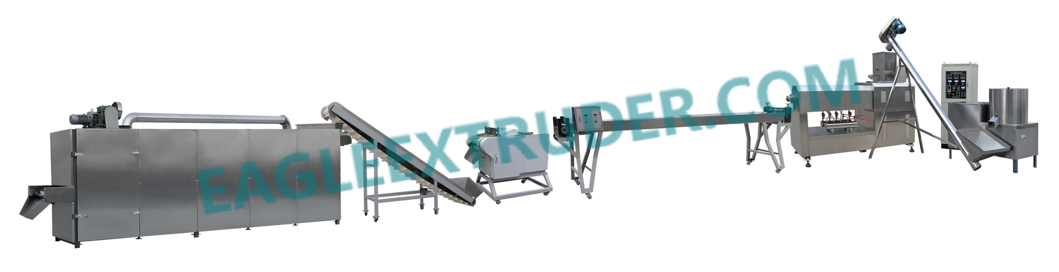 該生產(chǎn)線是我公司近幾年研制的,結(jié)合犬類動物的習(xí)性及健康要求,利用植物的營養(yǎng)成分,經(jīng)高溫、高壓生產(chǎn)出花色各異的寵物休閑食品。咬膠產(chǎn)品具有磨牙,除口臭,牙垢之功效,能有效的改善腸道功能,減輕便臭。整條生產(chǎn)線設(shè)計合理,配置靈活,適應(yīng)性強(qiáng)。